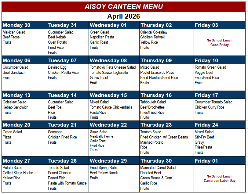Canteen Monthly Menu